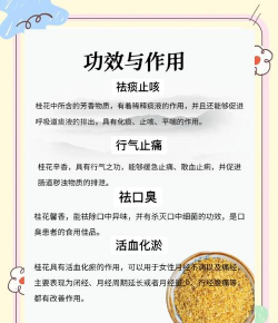 2.药用价值桂花还具有一定的药用价值。中医认为,桂花具有温中散寒、暖胃止痛、化痰止咳等功效。用桂花泡茶喝,可以缓解胃痛、胃胀等不适症状;用桂花炖汤喝,可以驱寒暖身、预防感冒。