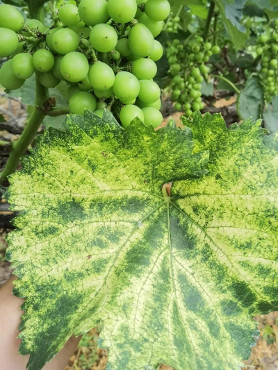 1、如果我们发现是葡萄的整个叶片快速的发黄,那最大可能性就是因为药害,那么大家一定要及时的从自身找问题,及时停止对于葡萄的药物喷洒,防止影响到葡萄的正常生长。