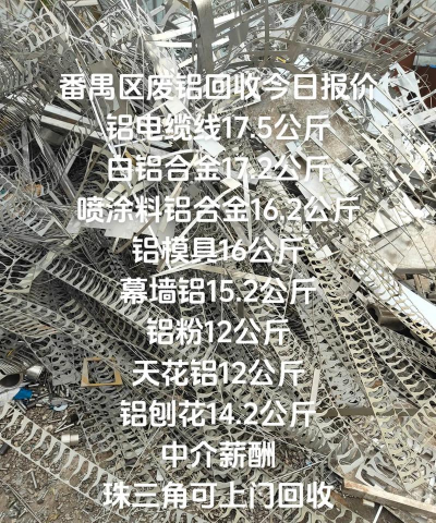 废品铝的价格因地区、时间、纯度等因素而异。一般来说,废品铝的价格在每斤几元到十几元不等。在一些回收站点或者废品市场,你可以根据当天的市场价格进行交易。当然,如果你对废品铝的纯度有较高的要求,价格也会相应提高。以下是根据2024年6月对废品铝价格进行的归纳:
