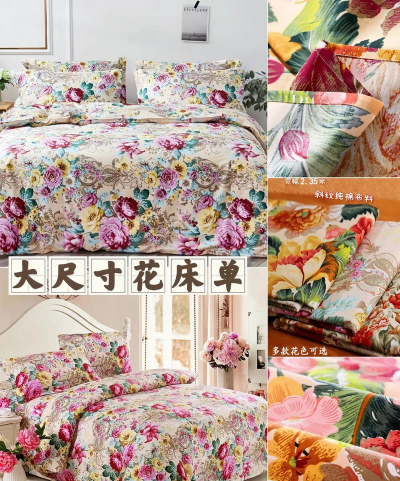 印花床单:通过活性印花技术呈现清晰花型,图案多样(如边花、散花、对角花等),色彩鲜艳且耐用。