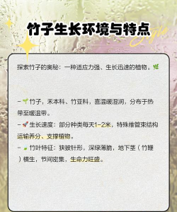 竹子,又名竹。品种繁多,有箭竹等。多年生禾本科竹亚科植物,茎为木质,是禾本科的一个分支。那么,竹子的生长环境和条件是什么呢?下面,我们一起来看看吧!