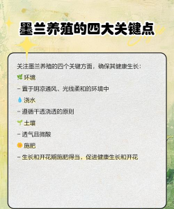 想要把墨兰养好可不是那么容易的,如果不注意的话很容易使墨兰出现叶子发黄的情况。在养殖的过程中,需注意浇水不能过量,施肥以氮肥和钾肥,不要施磷肥,夏天防日灼,冬天防冻伤。下面小编将为大家介绍墨兰的养殖方法和注意事项。