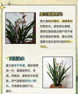 墨兰适宜的生长温度为15-28℃,夏季高温时应注意通风降温,避免温度过高导致生长不良。湿度方面,墨兰喜欢高湿度环境,室内养殖时可使用加湿器或将水盆放置在植株周围,以增加局部湿度。