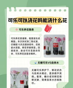 可乐可以浇花。因为可乐中的糖分可以为土壤中的微生物提供能量,有助于改善土壤的肥力;二氧化碳气体可以促进植物的光合作用;而可乐中的其他成分,如苯甲酸钠等,可以起到一定的防腐作用,有助于延长花朵的保鲜期。因此,可乐在一定程度上可以促进某些植物的生长,并保持花朵的新鲜度。