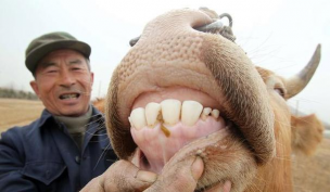 牛的犬齿位于门齿之后,虽然在成年牛中不发达或缺失,但在某些品种中,犬齿可以用于撕裂食物。这有助于将食物撕成更小的块,便于咀嚼和消化。
