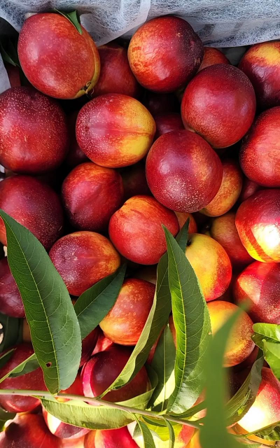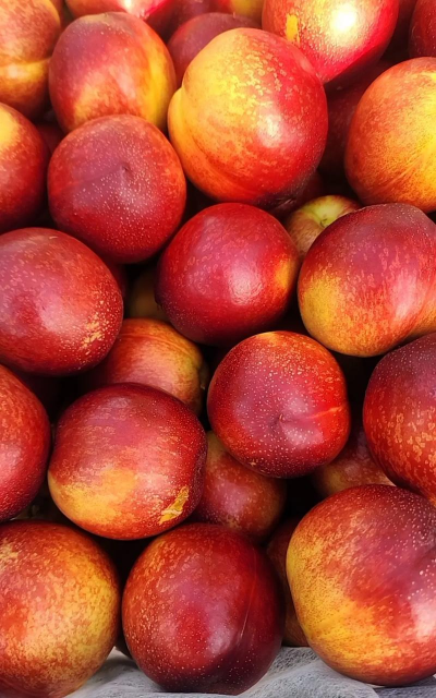 先看到的也是它的颜色,成熟的油桃颜色红中带黑、整个表皮颜色分布比较均匀,且带有细小的麻点,这样的油桃好看又好吃,而且麻点越多越香甜,因为麻点多说明它的受光照面积大、时间久;颜色看起来太花,一块红一黄的油桃不要购买,这样的油桃没有成熟,而且受光照不均匀,大多口感不那么好。