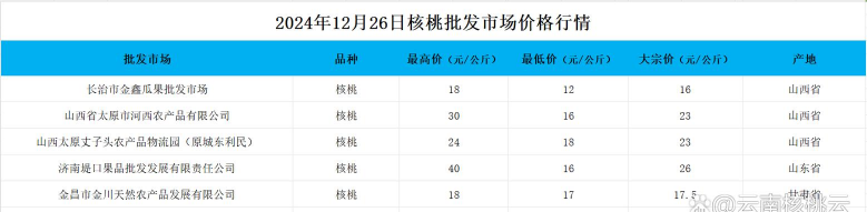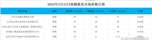 山西地区:山西忻州市原平市核桃6元/斤;山西忻州市定襄县核桃4.2元/斤。