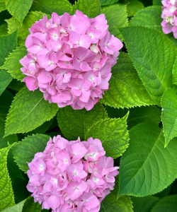 花色变化 :受土壤酸碱度影响,酸性土呈蓝色,碱性土呈红色;可通过施用硫酸铝调蓝,石灰调粉。