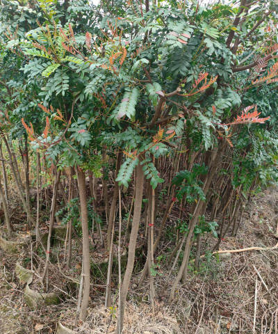 树皮灰色、枝干有棕色皮孔,叶片革质且羽状排列,是漆树科黄连木属常绿植物。