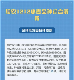 烟农1212小麦品种在我国黄淮海、长江中下游等小麦主产区均有种植,表现出较好的适应性,为我国小麦生产提供了丰富的品种资源。