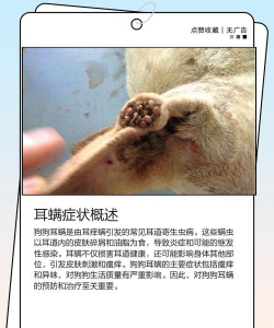 疥螨是一种传染性皮肤病,由寄生在皮肤顶层的螨虫引起。这在全世界的狗身上都很常见。这种情况始于皮肤上的红色圆形小肿块。由于抓挠,这些肿块可能会发展为耳缘和身体其他部位的鳞屑、结痂和生的、受刺激的开放性溃疡;然而,在某些情况下,只会看到红色的肿块和瘙痒。瘙痒很严重。螨虫的传播是通过直接接触受感染的动物或受污染的物体(如床上用品)。