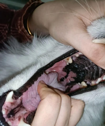真菌性口炎是由白色念珠菌过度生长引起的。这是狗口腔炎症的一种罕见原因。症状包括口腔炎症、口臭、流口水、拒绝进食、舌头或粘膜出血或开放性溃疡。它通常被认为与其他口腔疾病、长期抗生素治疗或免疫系统抑制有关。在大多数情况下,基础疾病和真菌感染本身都会得到治疗。仔细遵循兽医关于饮食的建议,以支持宠物的康复。你的兽医也会推荐一个治疗方案来控制导致问题的真菌。这是治疗的关键阶段,因为如果基础疾病不能得到充分治疗或控制,前景很差。