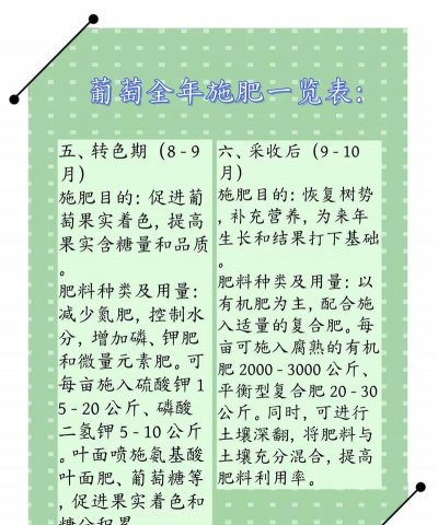 葡萄施肥的最佳时间可以分为以下几个关键阶段: