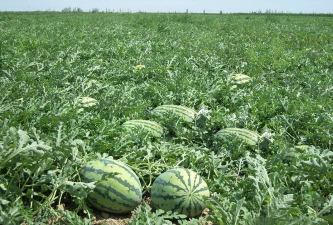 陆地栽培:西瓜的藤蔓匍匐在地面生长,果实直接结在藤上。由于成熟后果实体积大、重量较重(部分品种可达10公斤以上),若攀爬架栽容易因重力掉落摔碎,因此通常采用地面栽培方式。