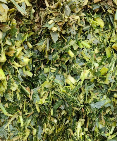 青贮材料的水分含量应控制在60%-70%之间。过干会导致发酵不完全,过湿会导致饲料发霉变质。