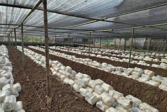 大田模式:菌棒埋入土坑(覆沙壤土2-3厘米),搭建遮阳棚(三分阳七分阴),保持湿度85%-95%,每日通风2-3次。
