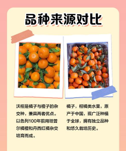 沃柑是桔子和橙子的杂交品种,它继承了桔子的优点,又融合了橙子的特性。沃柑的果皮光滑,橙色或橙红色,油胞细密,微凸或与果面平,凹点少。它的果肉嫩滑、汁多,口感甜柔,低酸爽口,营养成分很高,含有大量的维生素。因此,沃柑既有橘子的甜味,又有橙子的香气,是一种独特的柑橘品种。