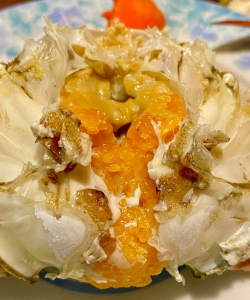 1、梭子蟹的蟹黄呈橘黄色,粉质状,犹如咸鸭蛋蛋黄一般。