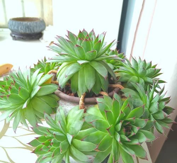 特征 :多肉植物,叶盘紧密排列,叶尖呈紫红色或咖啡色,叶缘有绒毛。