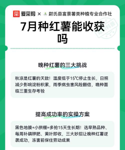 红薯,作为一种重要的粮食和经济作物,因适应性强、产量高、营养丰富而受到广泛种植。红薯的种植时间通常根据当地气候条件和种植方式有所不同。那么,插秧红薯7月底能种吗?下面,将为大家详细解答!