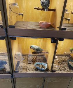 你提供的笼子必须足够大,让鸟有活动的空间。过小的笼子会造成压力,这通常会导致行为问题。大型鸟类的绝对最小笼子尺寸是鸟类翼展宽度、深度和高度的1.5倍。这些尺寸为鸟提供了伸展和移动的空间,而不会损坏笼杆上的翅膀或尾羽。当然,如果你计划在笼子里养一只以上的鸟,那么空间的大小应该适当增加。同一物种的鸟类在放在同一个笼子里时不一定是兼容的。Cagemate创伤相当常见,特定鸟类的性格将决定它们能否和平共处。较大的鸟类可能会对其他鸟类造成严重甚至致命的伤害,甚至是它们自己的物种。相反,一些不同物种的鸟类可能会被成功地关在一起。在尝试将鸟类放入同一围栏之前,请咨询您的鸟类兽医或经验丰富的鸟类主人,了解引入鸟类的方法。