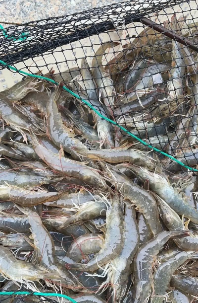 (3)到24-30℃的水温时,基围虾的摄食量不断增多,就是它快速成长的时间,所以要增加投饵确保有足够的食物。