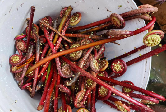采收时间:4~5月,当嫩叶芽高20~25cm、羽状小叶未展开时采收最佳。选择鲜嫩、未开蕨枝爪的植株,避免日晒与挤压。